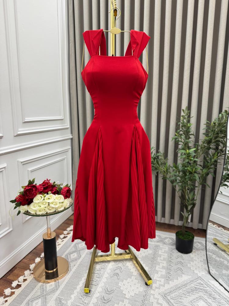 فستان احمر باربي بكسرات انيقه