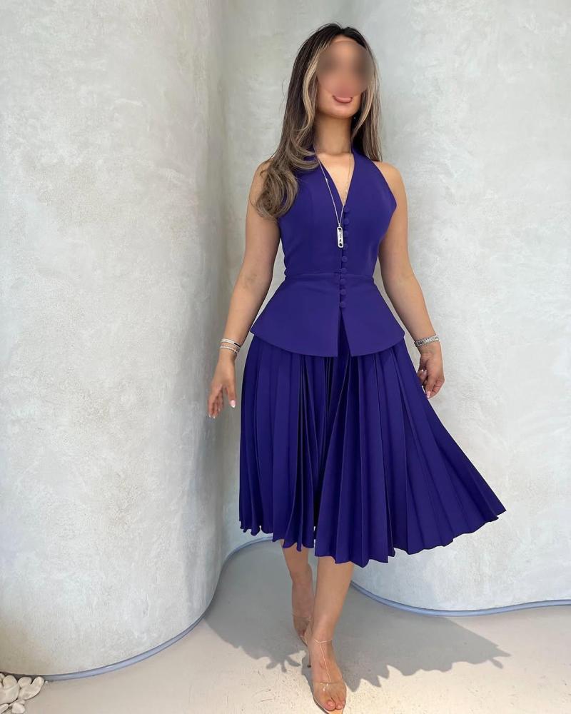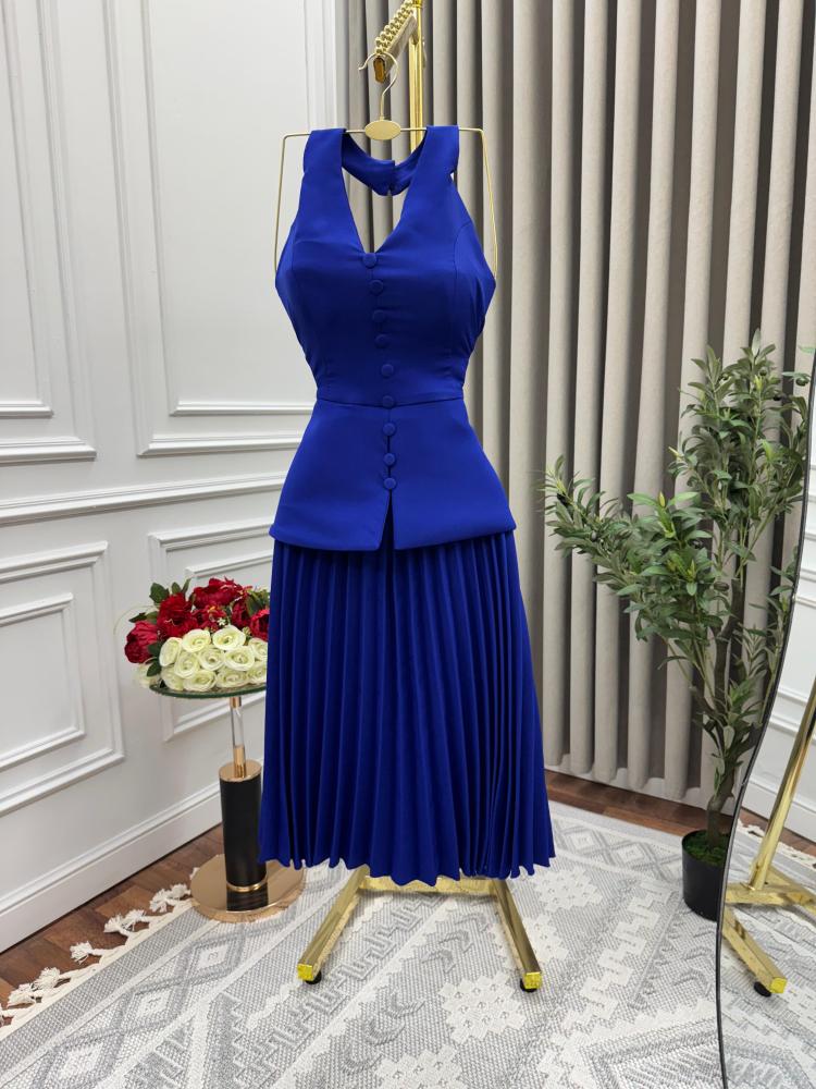 فستان السن المحير  بكسرات انيقه لونين