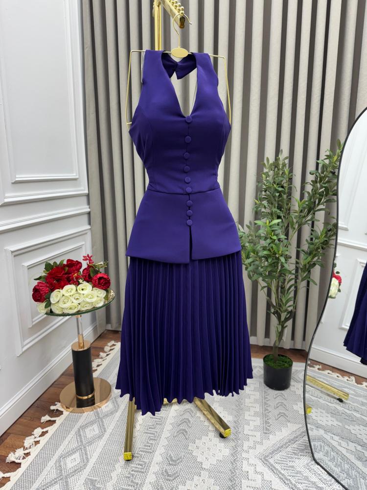 فستان السن المحير بكسرات انيقه لونين