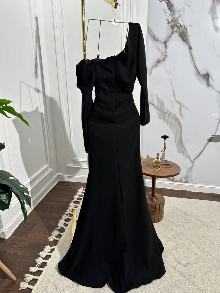 يتميز فستان سهرة اسود طويل بتصميمه الراقي والمميز الذي يناسب السيدات الباحثات عن الأناقة والجاذبية في المناسبات الخاصة, هذا الفستان مصمم بدقة لتوفير إطلالة فخمة وساحرة ليكون الخيار المثالي للسهرات وحفلات الزفاف والمناسبات الكبيرة.