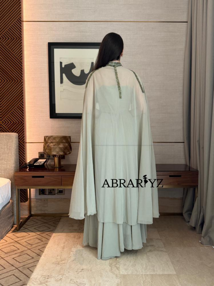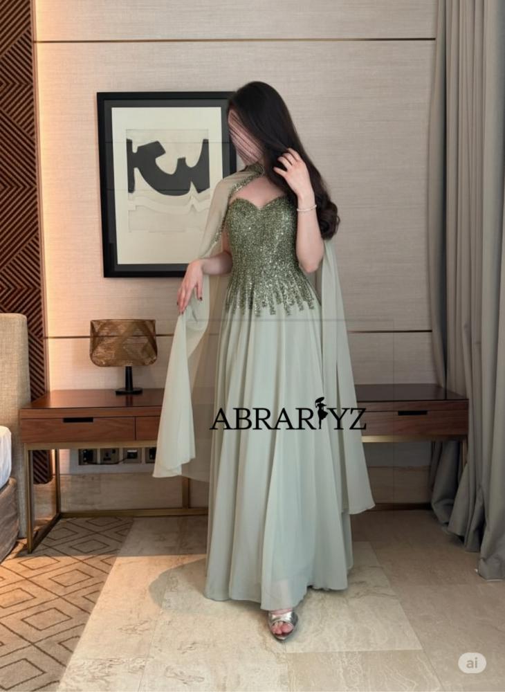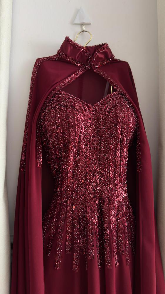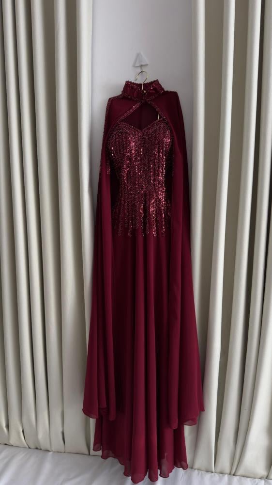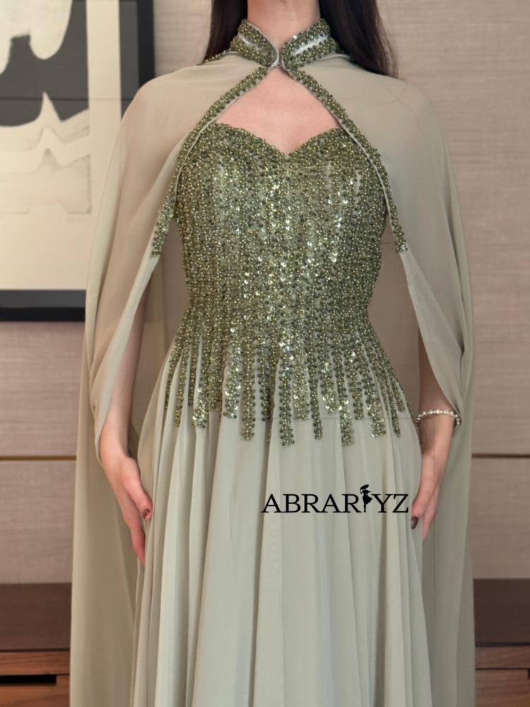 فستان سهره بقصة كاب شيفون تطريز يدوي لونين