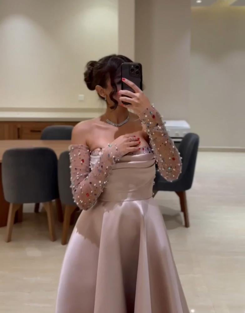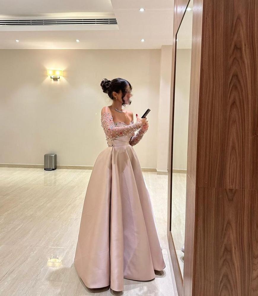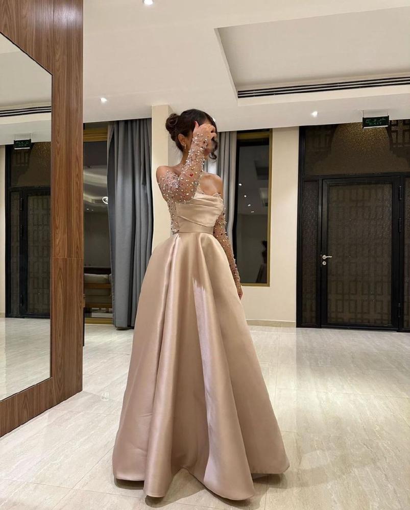 فستان سهرة طويل بأكمام شفاف