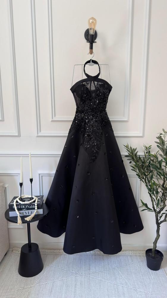 اسم المنتج : فستان سهره اسود خرز شغل يد