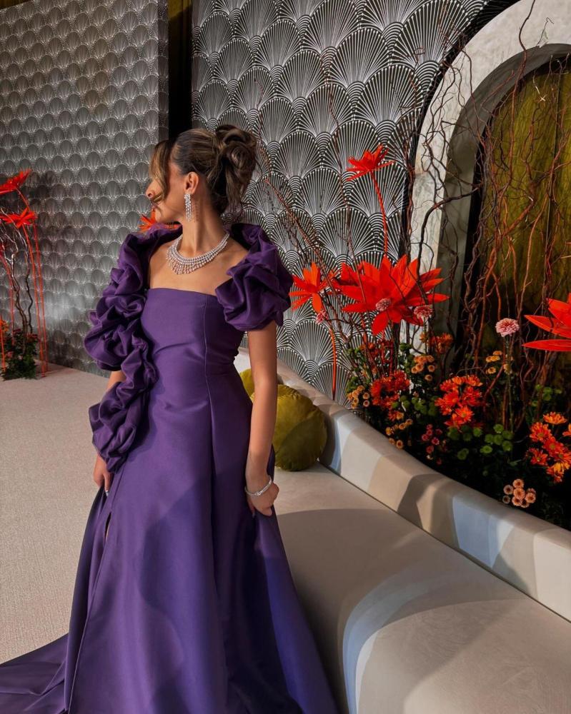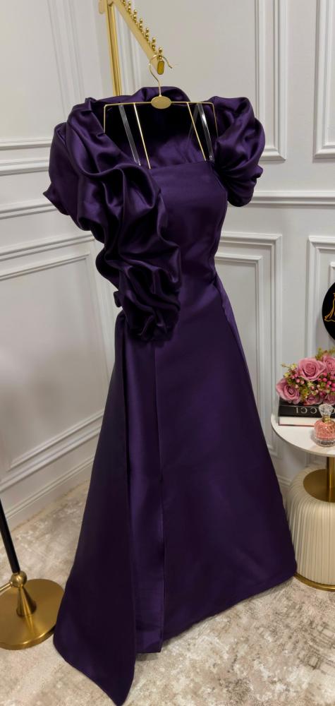 فستان سهره بتصميم مكرمش على الاكتاف