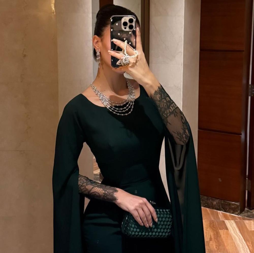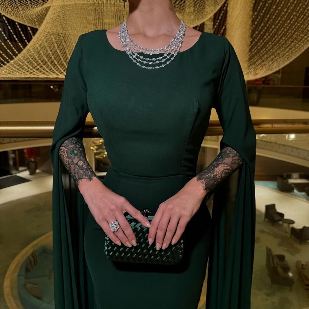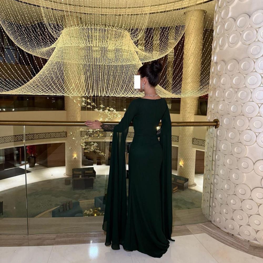 فستان سهره ناعم زيتي باكمام طويله
