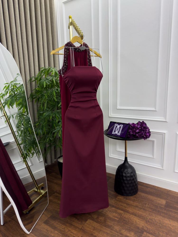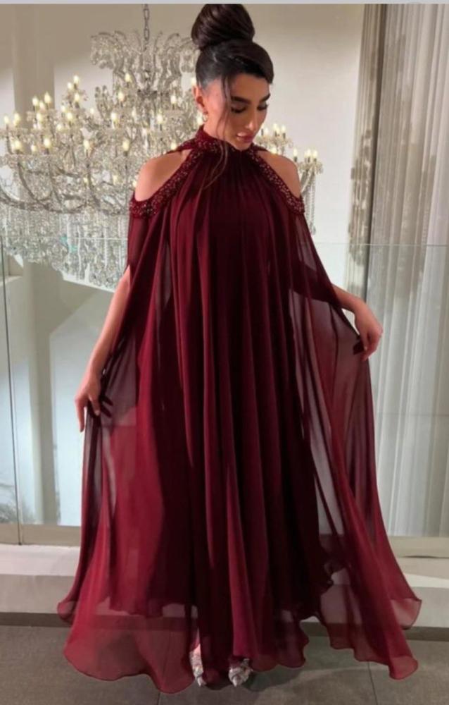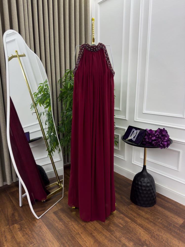 فستان سهره شيفون تطريز يدوي بالون العودي