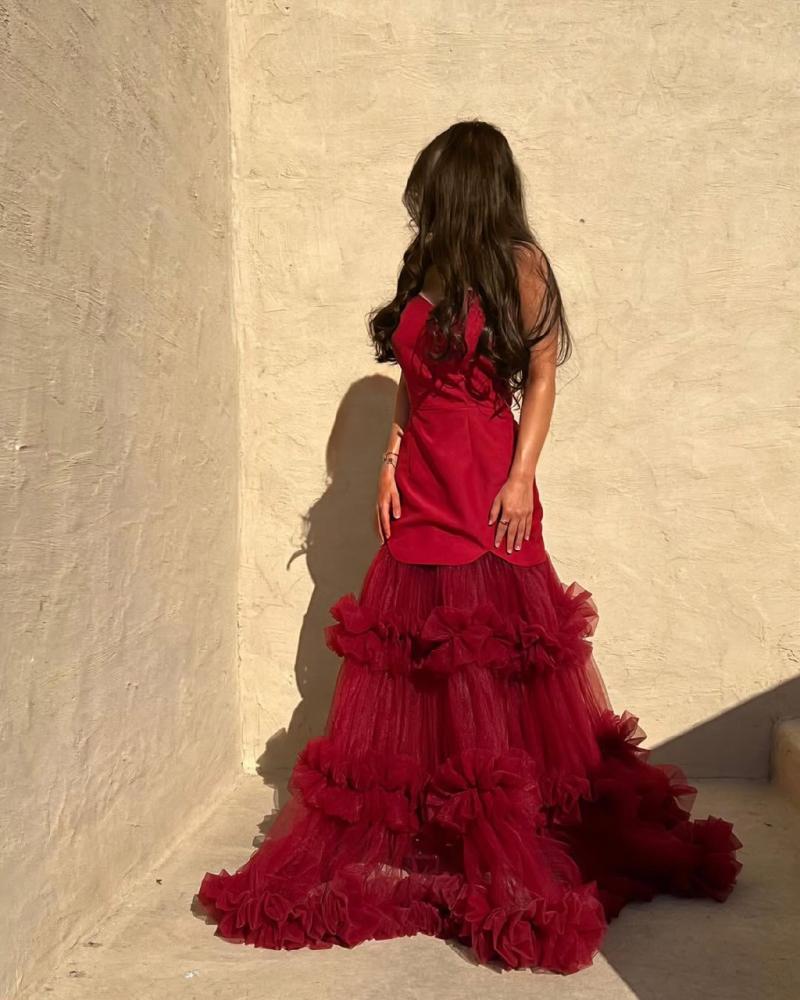 فستان سهره طويل احمر