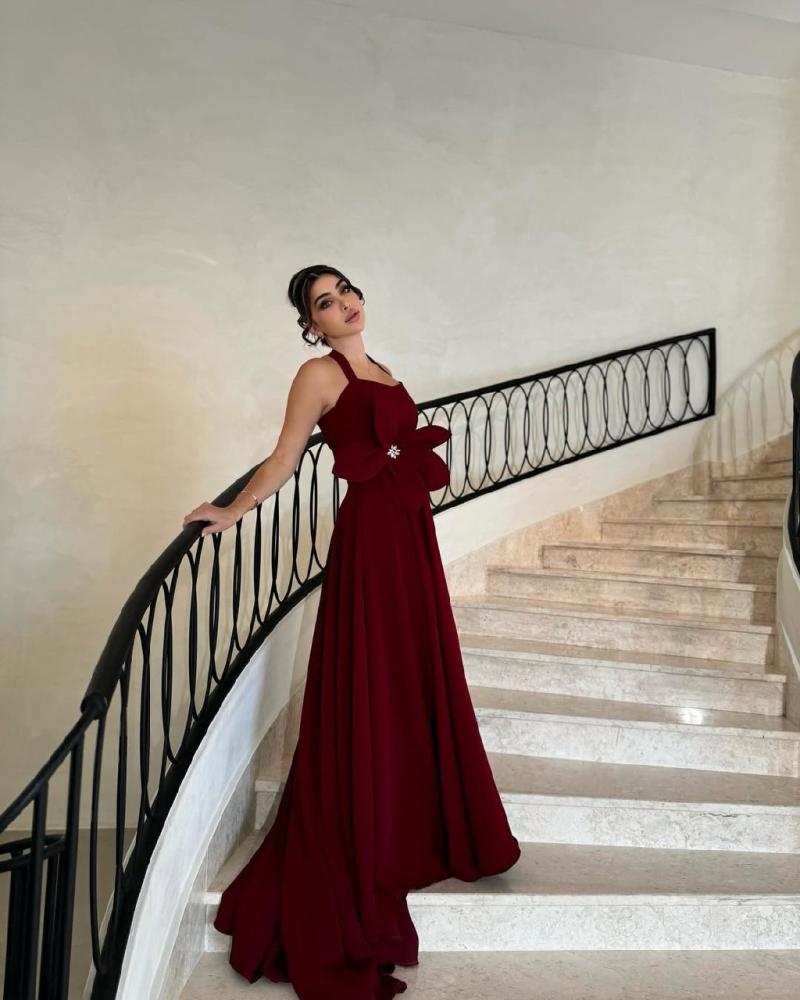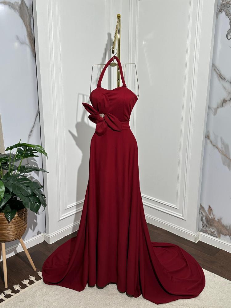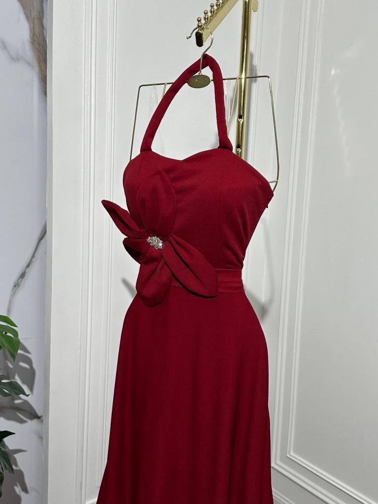 فستان سهره طويل بألوان عنابي