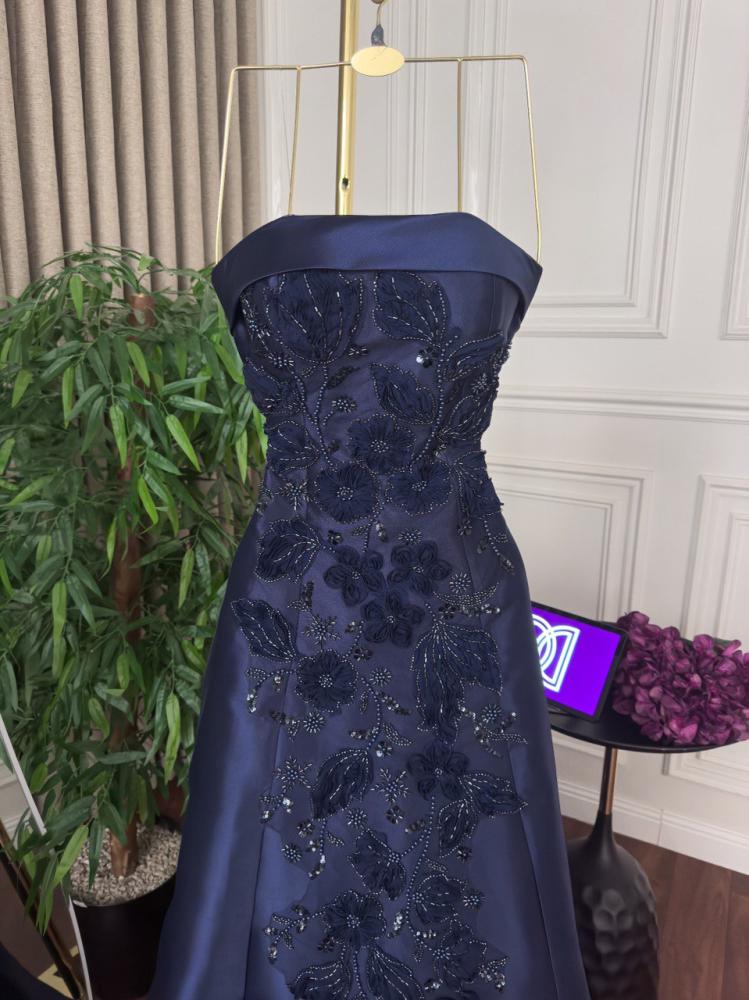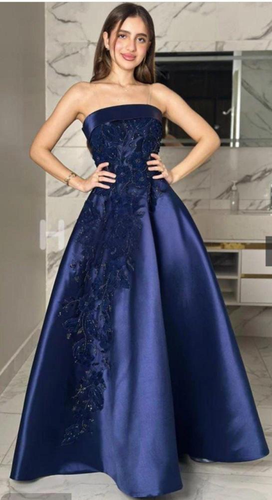 فستان سهره كحلي ميكادو تطريزات يدوي